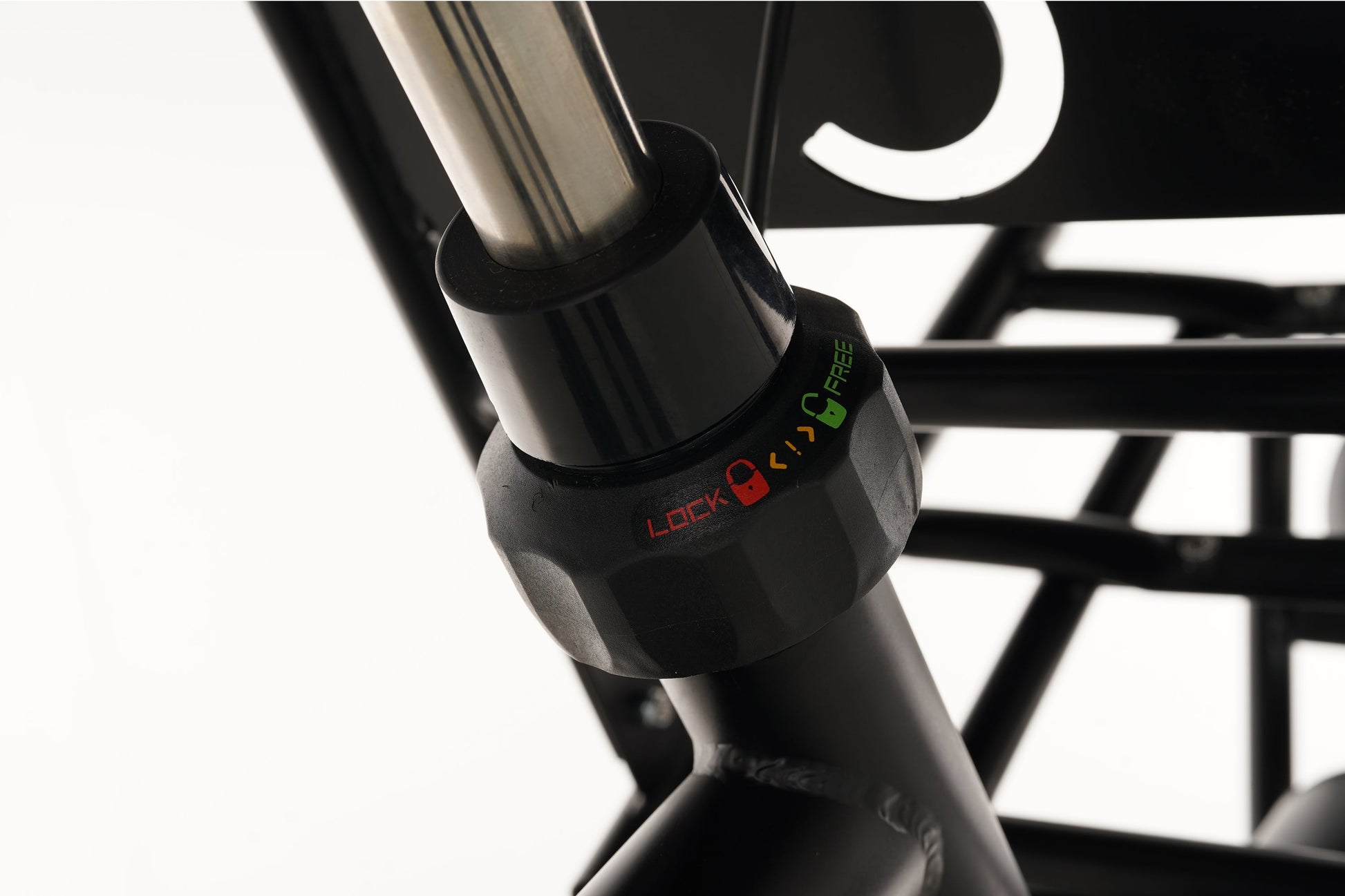 Een handig extraatje is het stuurslot, waarmee het stuur op zijn plek blijft staan tijdens het parkeren. Ideaal als je zware tassen of een krat op de voordrager hebt: zo valt je fiets niet zomaar om.
