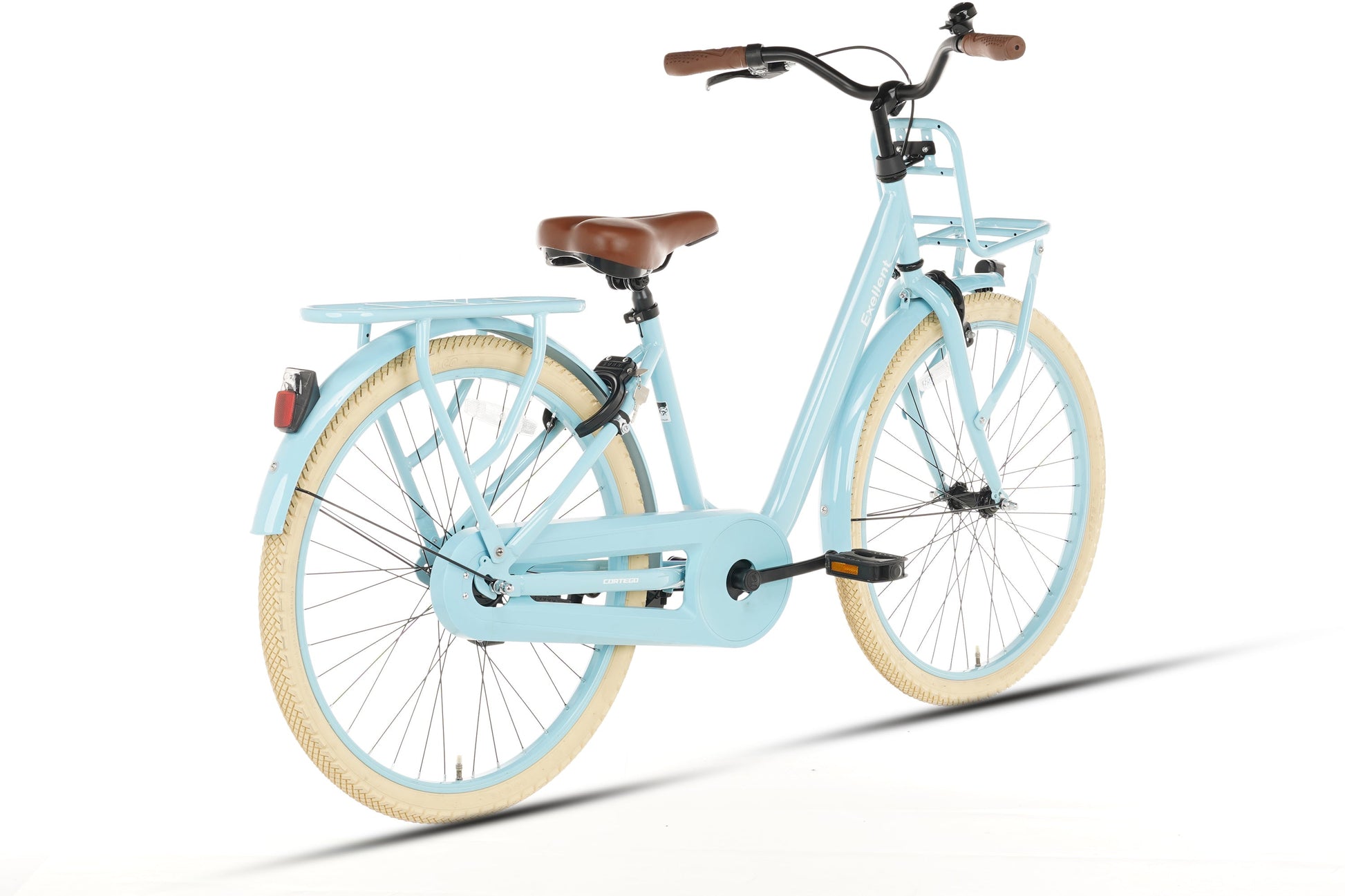 De Cortego Excellent 26 inch is de ideale meisjesfiets voor elk meisje dat graag opvalt. Met zijn stoere en stijlvolle uitstraling maakt deze transportfiets gegarandeerd indruk op elk schoolplein. De fiets is uitgerust met een stevige voordrager, perfect voor het vervoeren van een kratje of andere bagage. Voor optimale zichtbaarheid is de fiets voorzien van batterijverlichting aan zowel de voor- als achterzijde, zodat uw dochter of kleindochter ook 's avonds veilig de weg op kan.