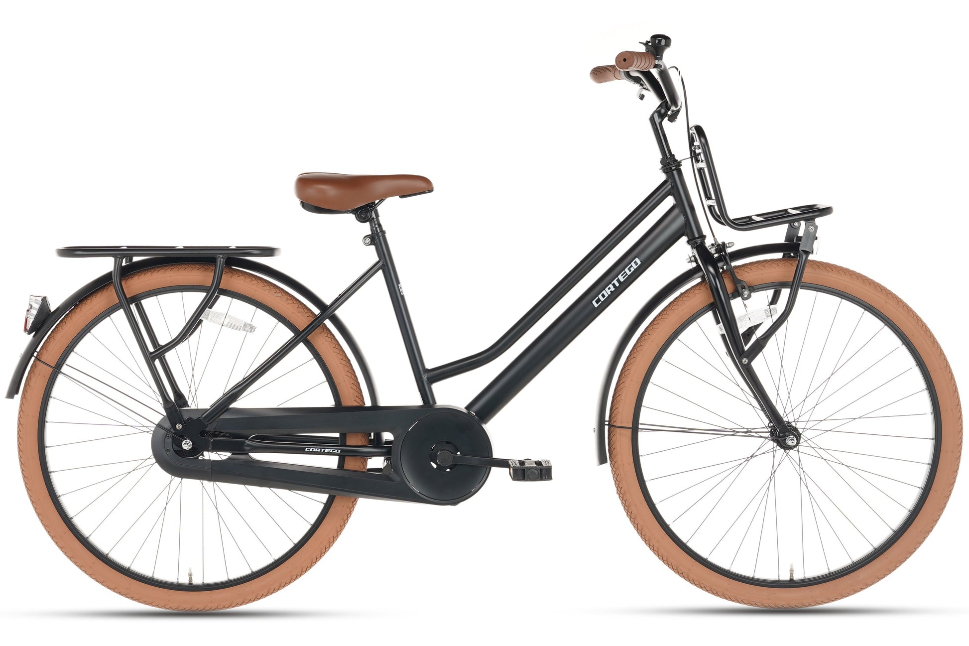 De Cortego Liberty 26 inch is de ideale meisjesfiets voor elk meisje dat graag opvalt. Met zijn stoere en stijlvolle uitstraling maakt deze transportfiets gegarandeerd indruk op elk schoolplein. De fiets is uitgerust met een stevige voordrager, perfect voor het vervoeren van een kratje of andere bagage. Voor optimale zichtbaarheid is de fiets voorzien van batterijverlichting aan zowel de voor- als achterzijde, zodat uw dochter of kleindochter ook 's avonds veilig de weg op kan.