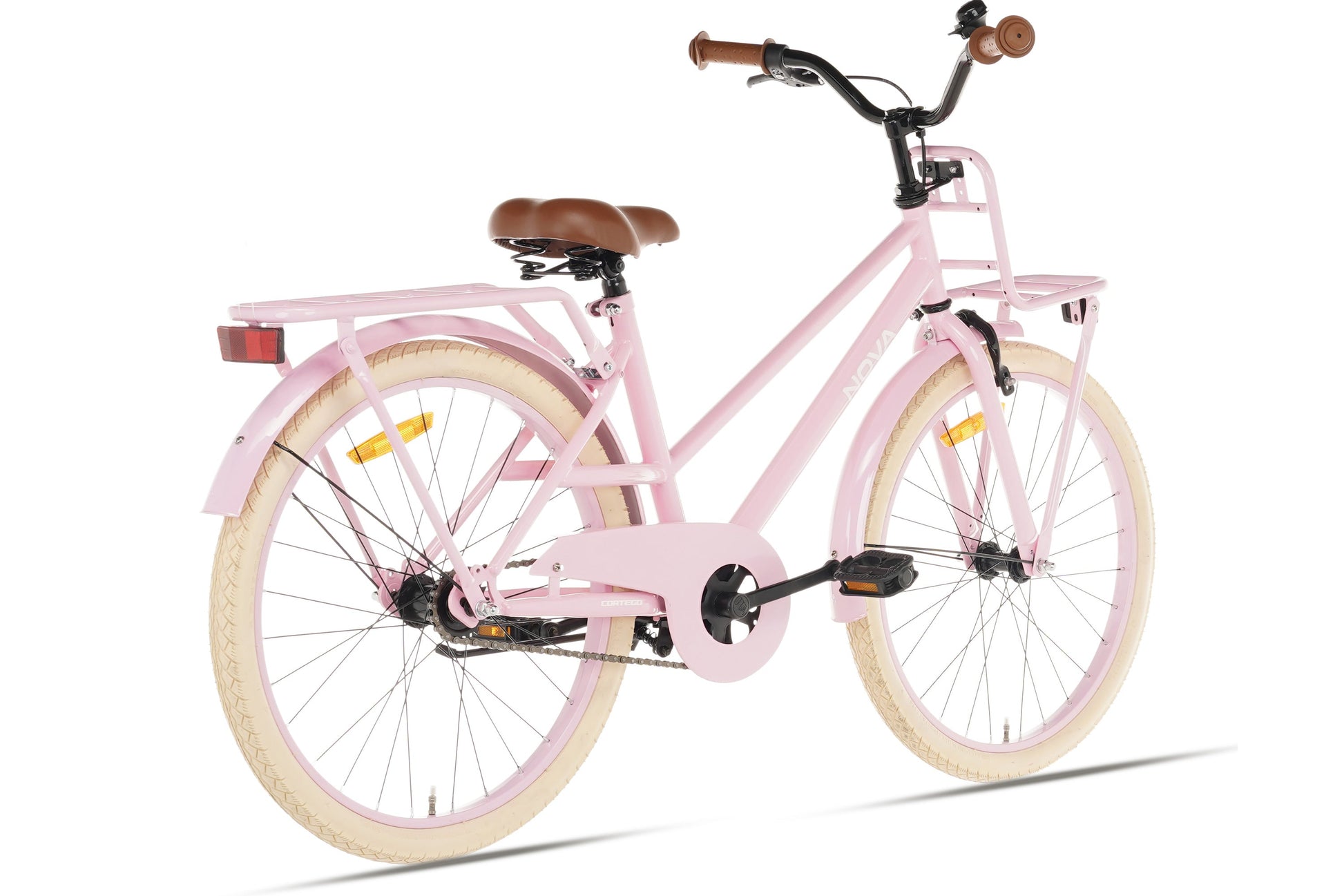 De Cortego Nova valt op door zijn frisse, roze kleur en slim ontworpen onderdelen zoals de gesloten kettingkast en stevige zijstandaard. Deze fiets is niet alleen functioneel, maar ook een lust voor het oog!