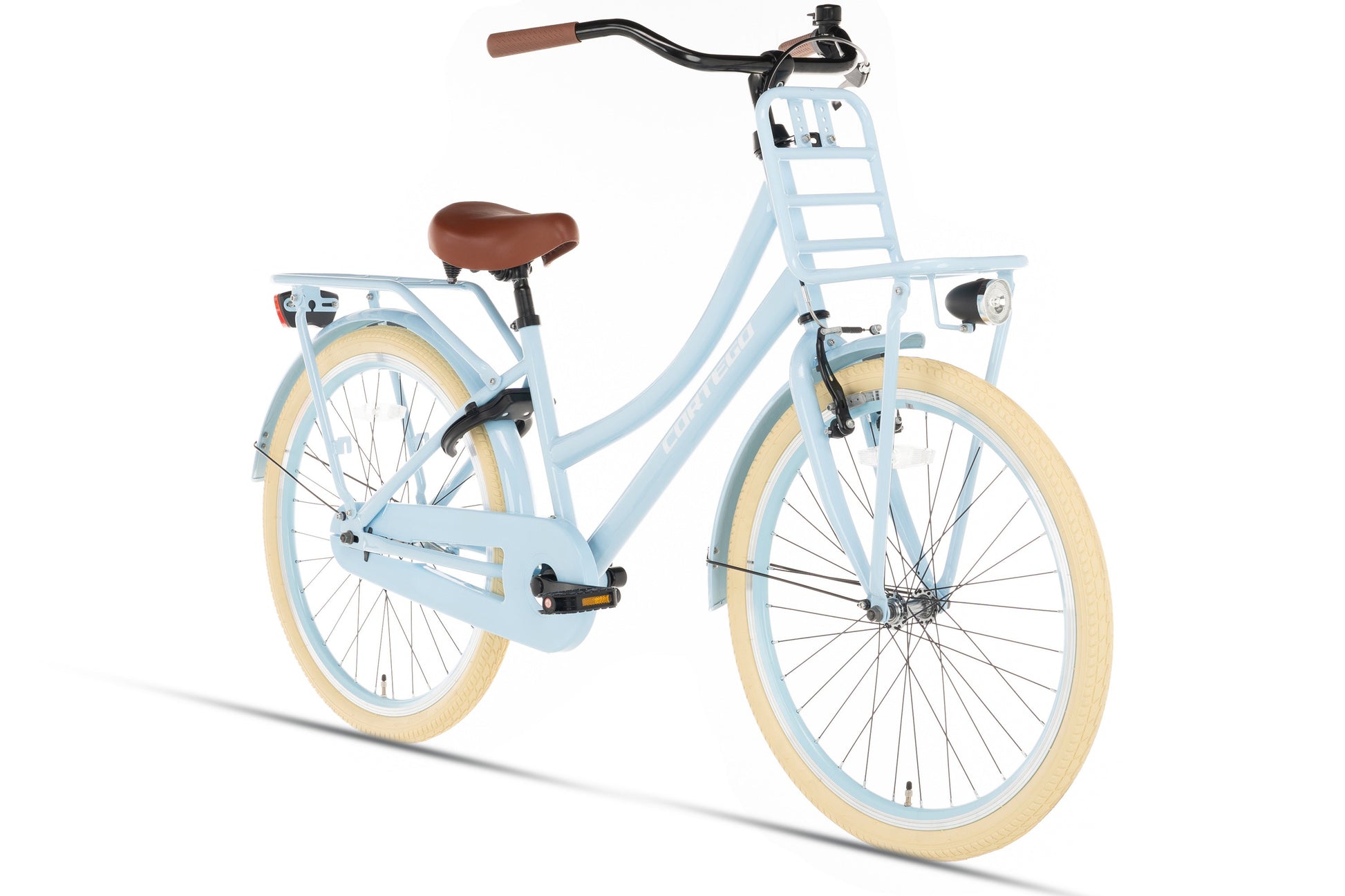 De Cortego Transporter 22 inch is de ideale meisjesfiets voor elk meisje dat graag opvalt. Met zijn stoere en stijlvolle uitstraling maakt deze transportfiets gegarandeerd indruk op elk schoolplein. De fiets is uitgerust met een stevige voordrager, perfect voor het vervoeren van een kratje of andere bagage. Voor optimale zichtbaarheid is de fiets voorzien van batterijverlichting aan zowel de voor- als achterzijde, zodat uw dochter of kleindochter ook 's avonds veilig de weg op kan.